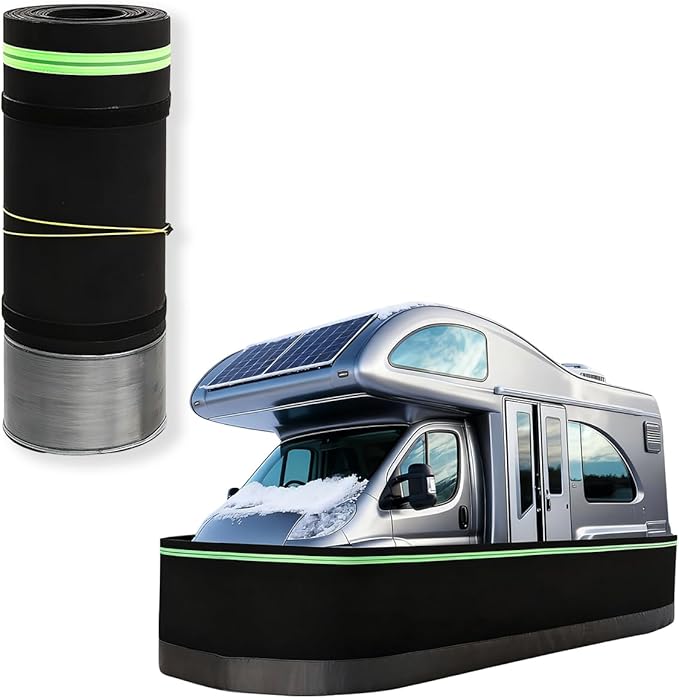 - All-Weather Protection:This Travel Trailer Skirting provides robust protection for RVs,mobile homes and other vehicles against severe weather conditions like heavy rain,snowstorms and strong winds.It effectively prevents scratches,scrapes and shell cracking,extending the lifespan of your RV chassis materials.Ideal for winter travel and outdoor gardens