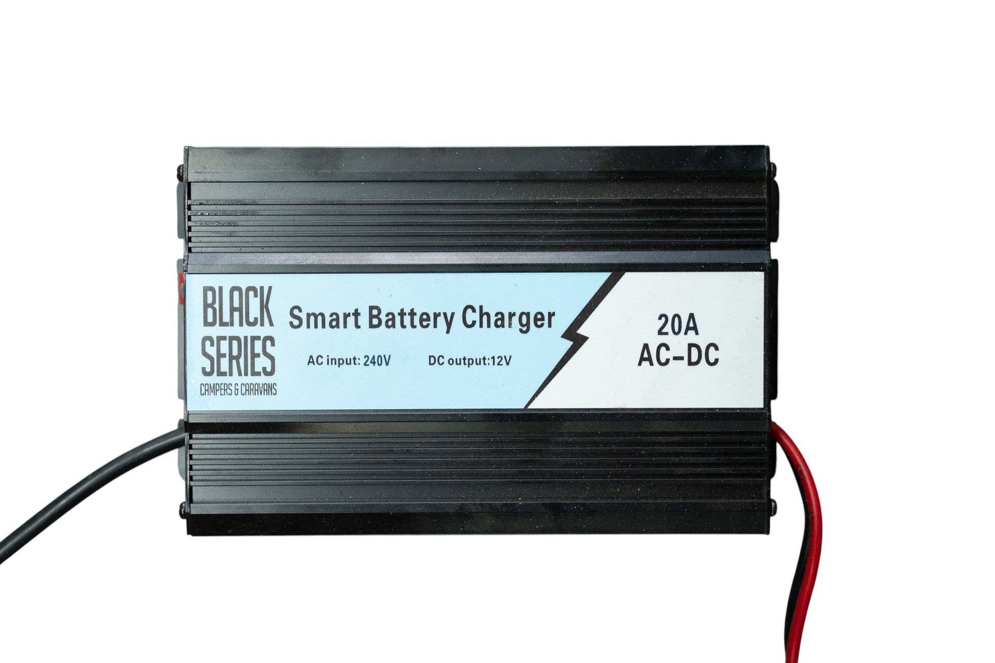 Professional-grade AC to DC battery charger with intelligent multi-stage charging. This 20-amp charger efficiently charges and maintains your RV battery bank with advanced charging algorithms.
