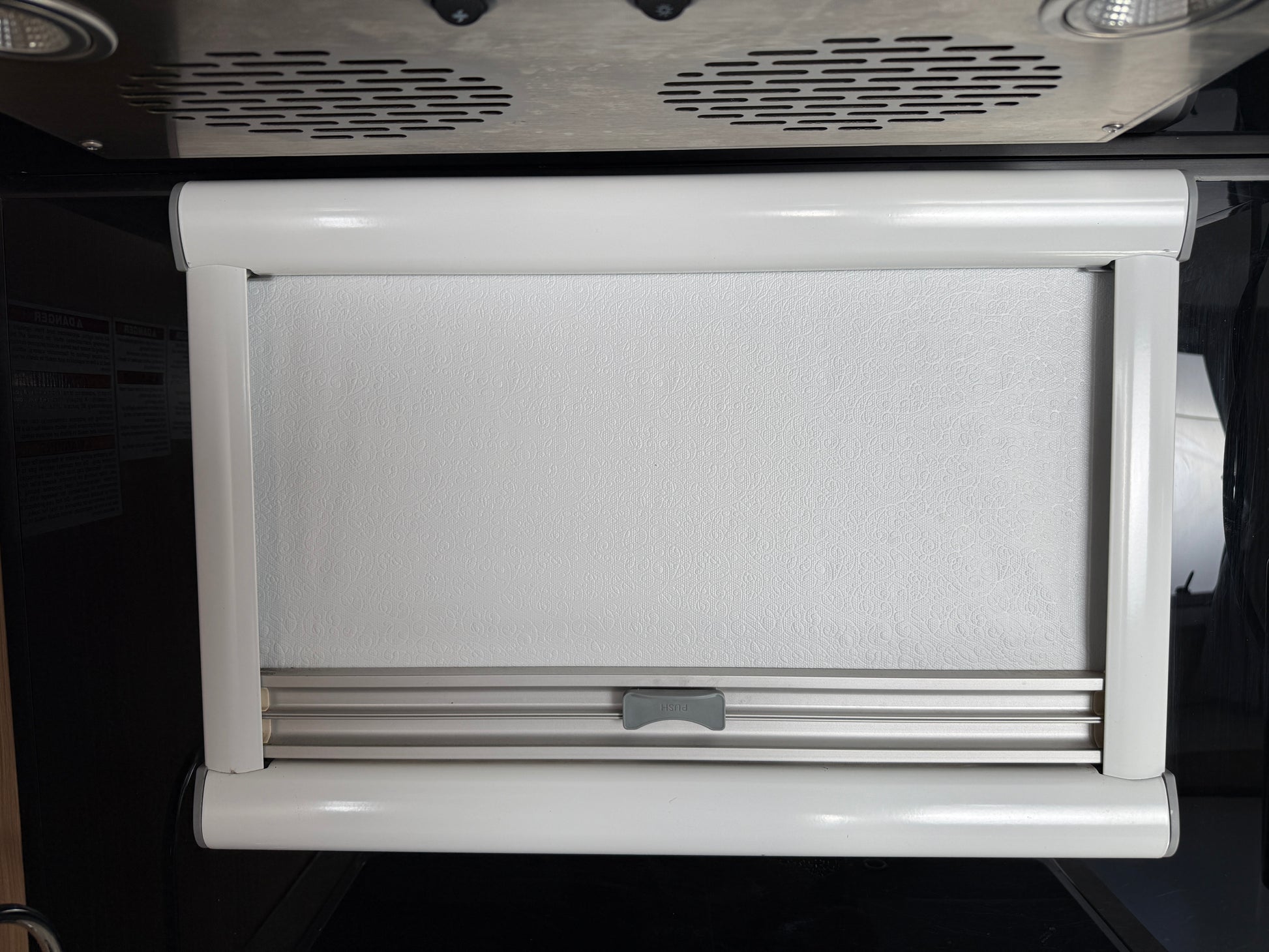 Multi-functional window treatment combining reflective insulation with bug protection. This slide-in assembly provides privacy, temperature control, and insect screening in one convenient system.